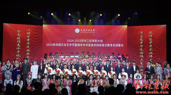 2025年校园文化艺术节暨铸牢中华民族共同体意识教育月累计开展21项校级活动、15项院级活动和37项社团活动,打造了“各族学子看大连”“一帮一”互助学习小组评比等特色活动,吸引近8万人次参与,有效推动了校园文化建设与“铸牢中华民族共同体意识”教育深度融合。